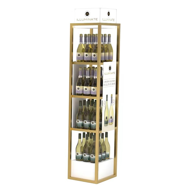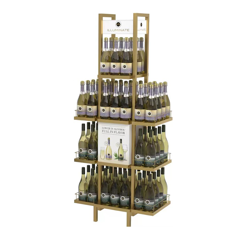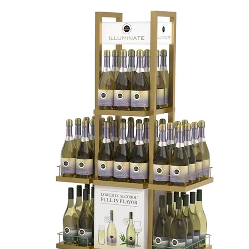 Apache Customizable Floor Standing Metal Wine Bottle Display Racks Painted Finish for Hot Selling Supermarkets