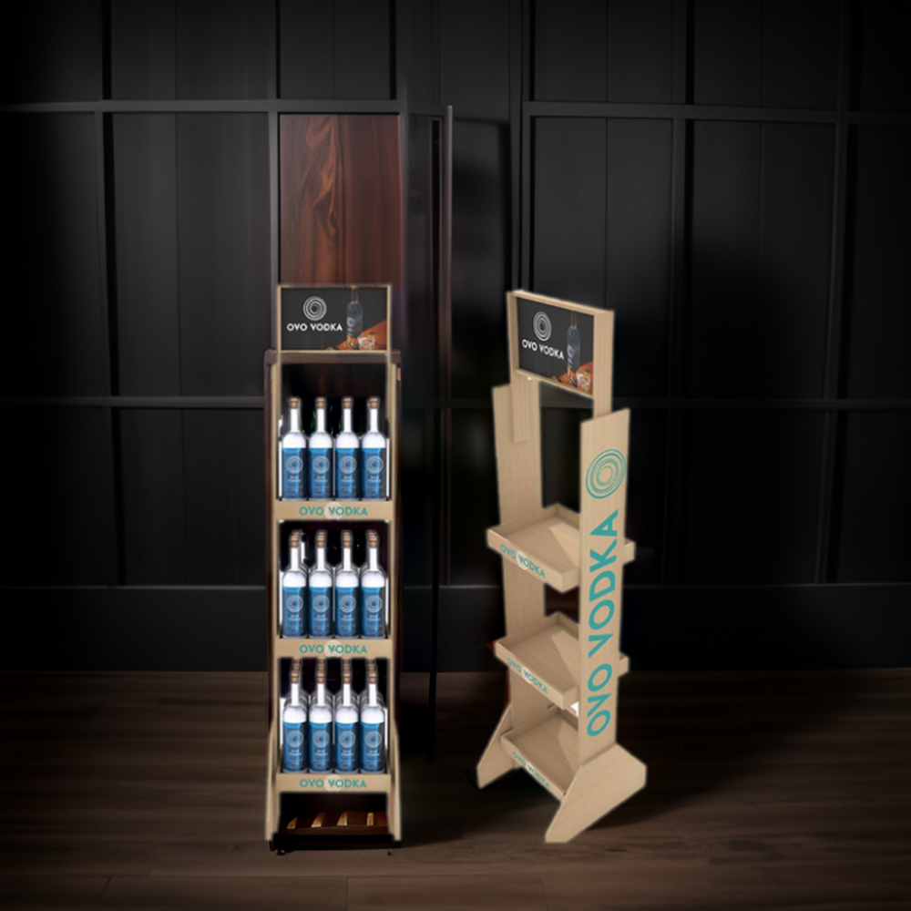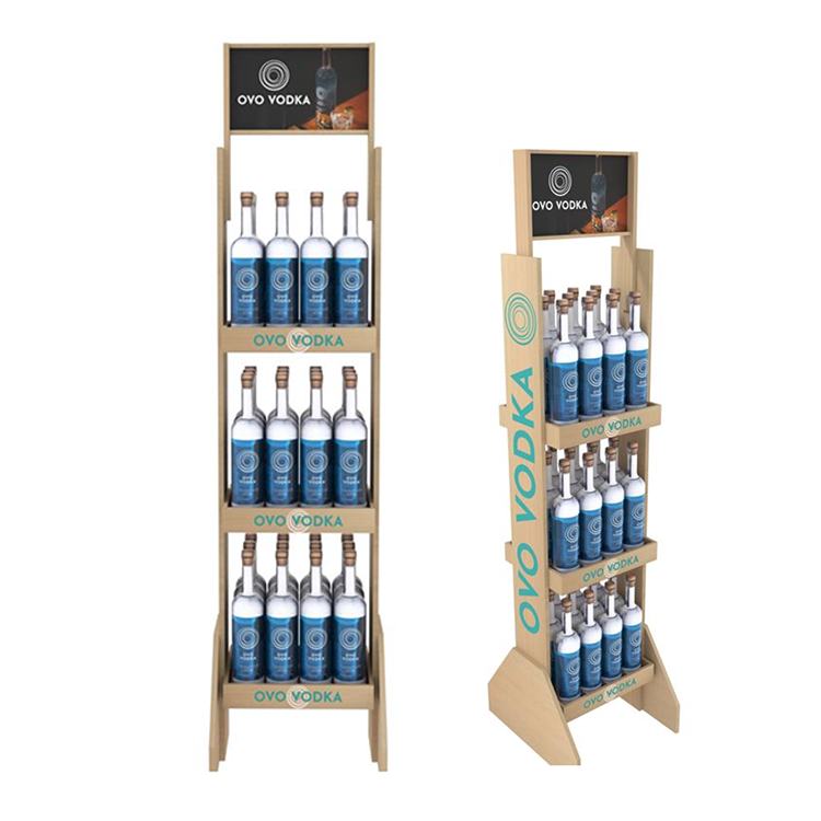 apache modern foldable wooden display rack durable whiskey bottle showcase for supermarket floor display stand-10