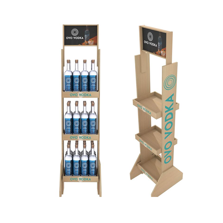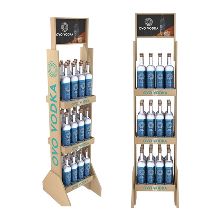apache modern foldable wooden display rack durable whiskey bottle showcase for supermarket floor display stand-22