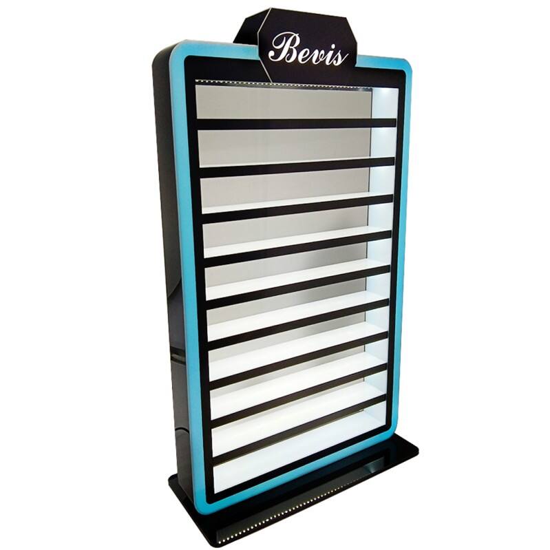 L'éclairage LED intégré le distingue. Les lumières éclairent les produits de l'intérieur, mettant en valeur les détails pour capter immédiatement l'attention. Ils créent une ambiance chaleureuse et accueillante, encourageant une exploration approfondie des produits - idéal pour se démarquer sur un marché concurrentiel.