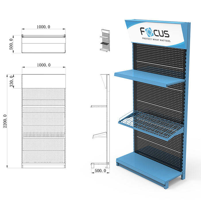 Bevis Espositore personalizzato in metallo singola faccia Leggero gondola per negozio al dettaglio per utensili a mano per supermercati