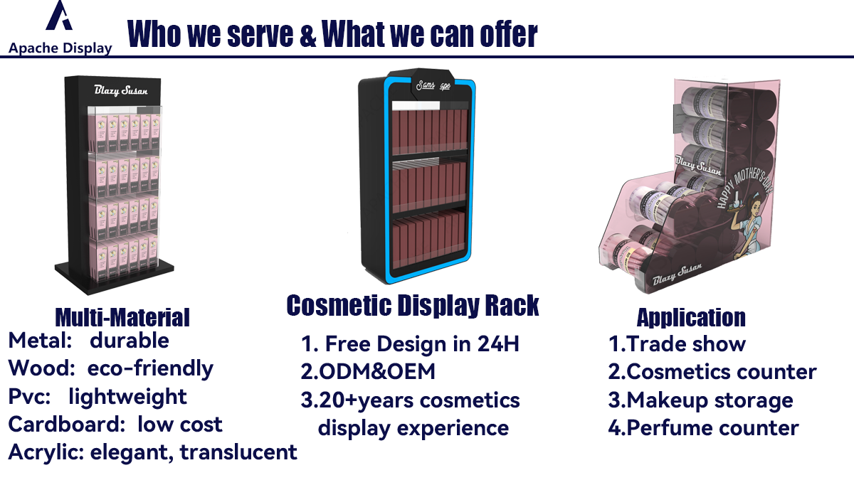2005年より、アパッチ社は店舗用ディスプレイ什器業界の専門企業として、カスタムディスプレイの設計・製造に特化して参りました。特に、複数素材を組み合わせたディスプレイ分野において高い実績を誇ります。当社の経験豊富なデザイン・エンジニアリングチームは、業界における長年の知見を持ち、最新のソフトウェアを駆使し、実際の生産工程を深く理解しています。当社では、現代的な技術および高精度機器を活用し、切断、レーザー彫刻、穴開け、ダイヤモンド研磨などの工程を実施しています。熟練した生産チームが、プロフェッショナルなOEM/ODMサービスを提供いたします。当社の製品および製造プロセスは、輸出用段ボール箱への梱包前に厳格な品質管理(QC)による検査を受けています。