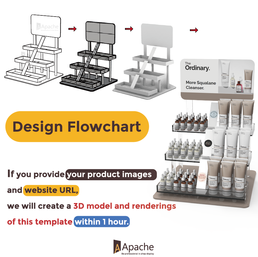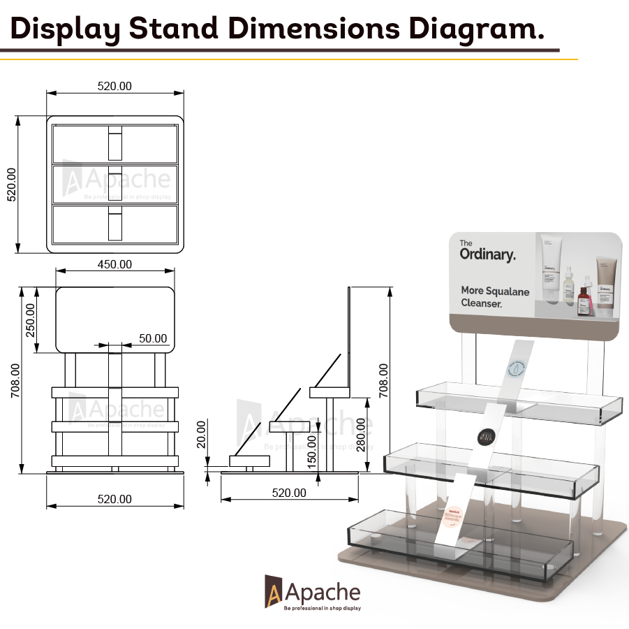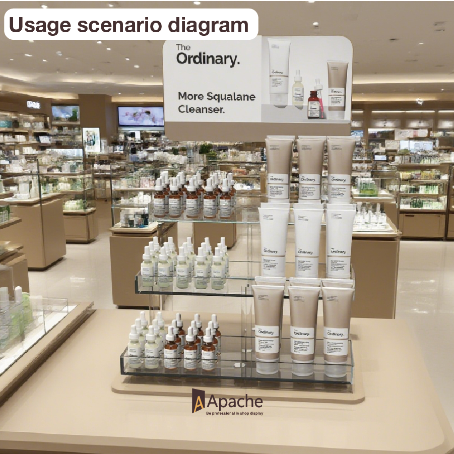 化粧品店用Apacheカスタムスキンケア製品ディスプレイ・アクリル製コスメディスプレイ・スキンケア製品陳列ラック