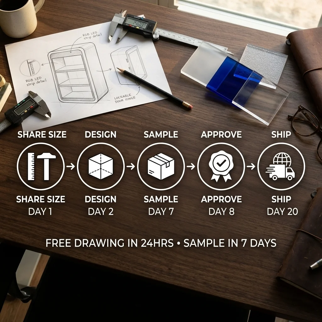 24時間無料デザイン対応:ロゴおよびカウンターの寸法をお送りください。当社のエンジニアリングチームが、24時間以内に完全な3D CAD図面をご提供します。