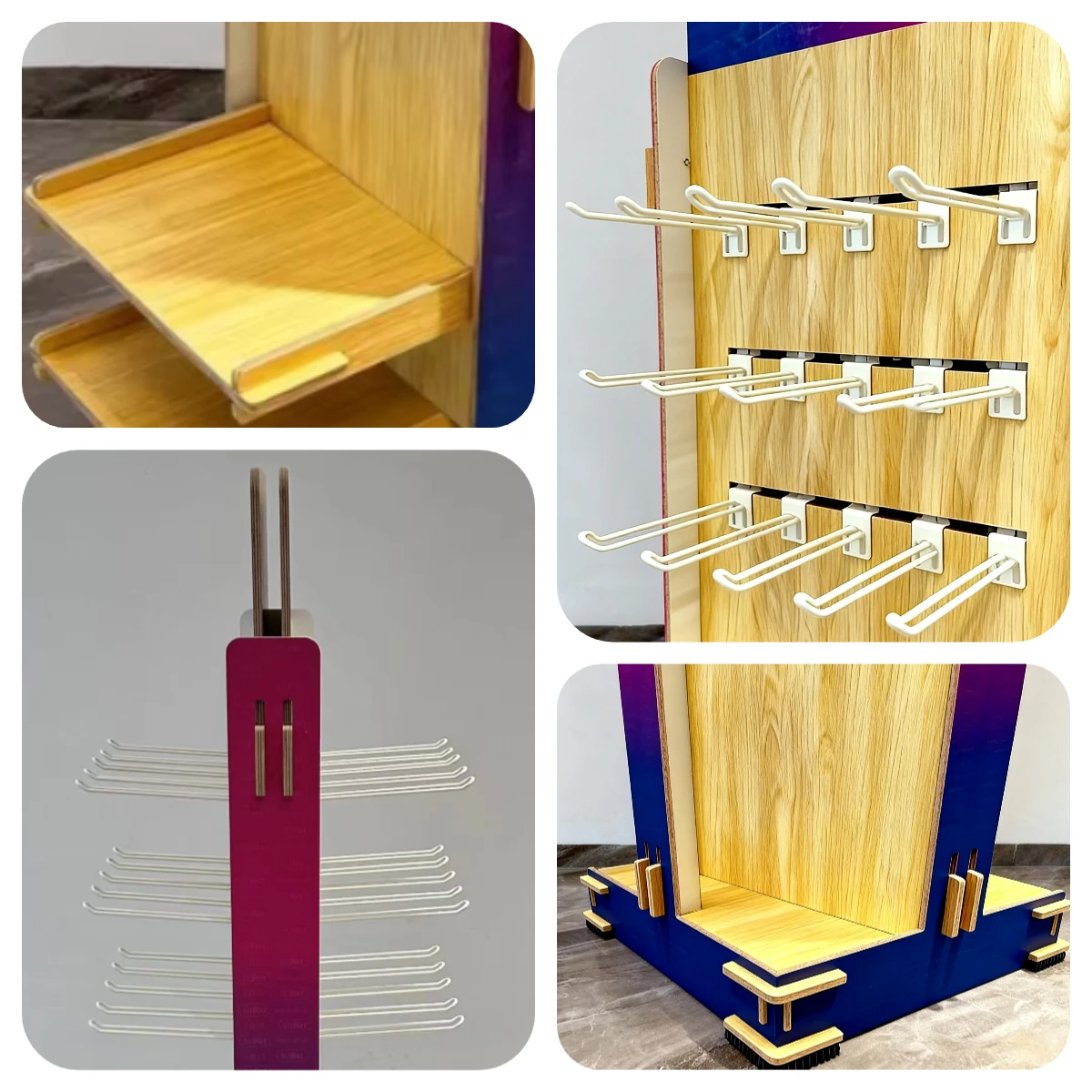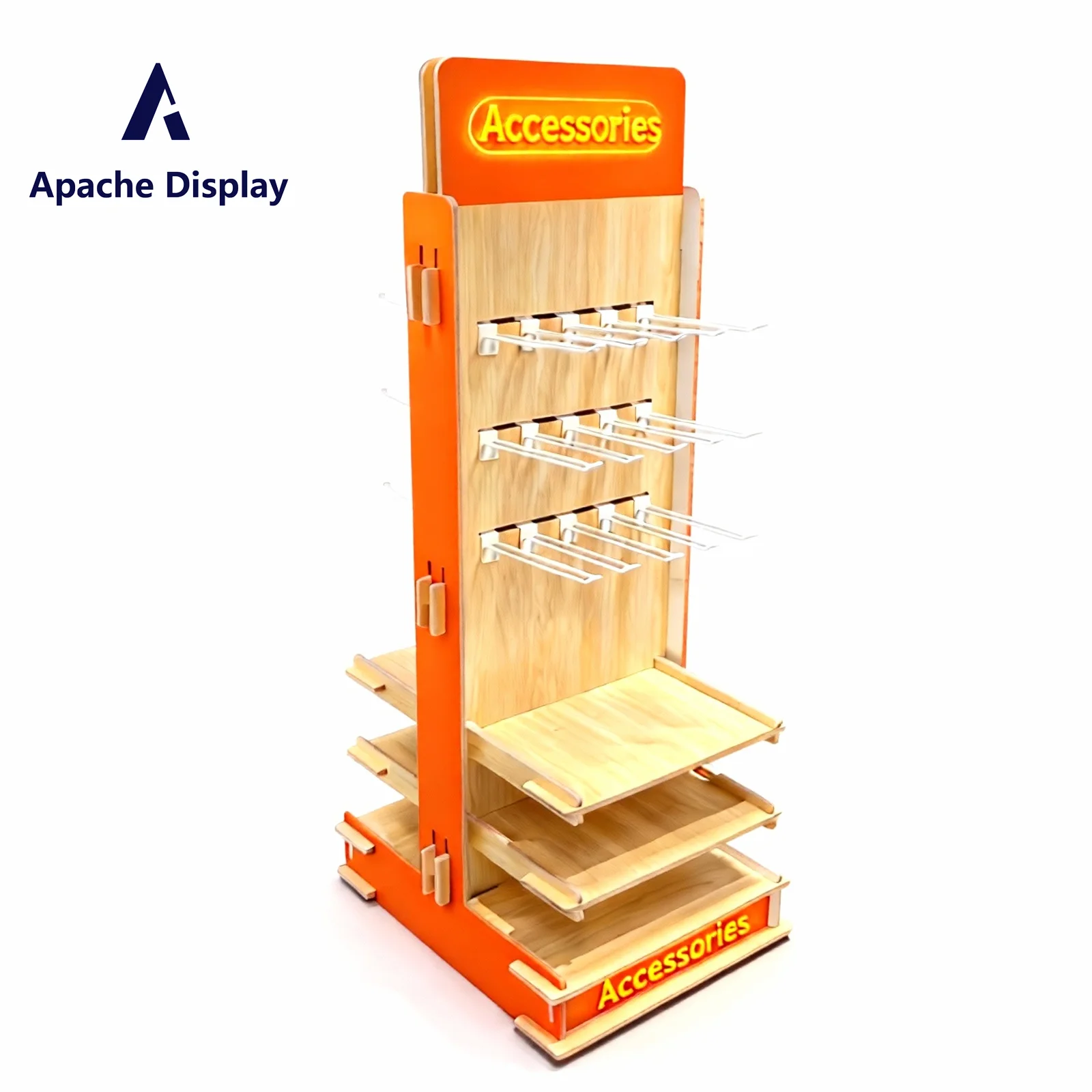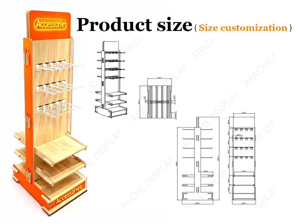 カスタム穿孔式木製ボードディスプレイラック・ペグボード・金属/木製/アクリル製ブティック/小売店向けブランド化マーチャンダイジングユニット Apache
