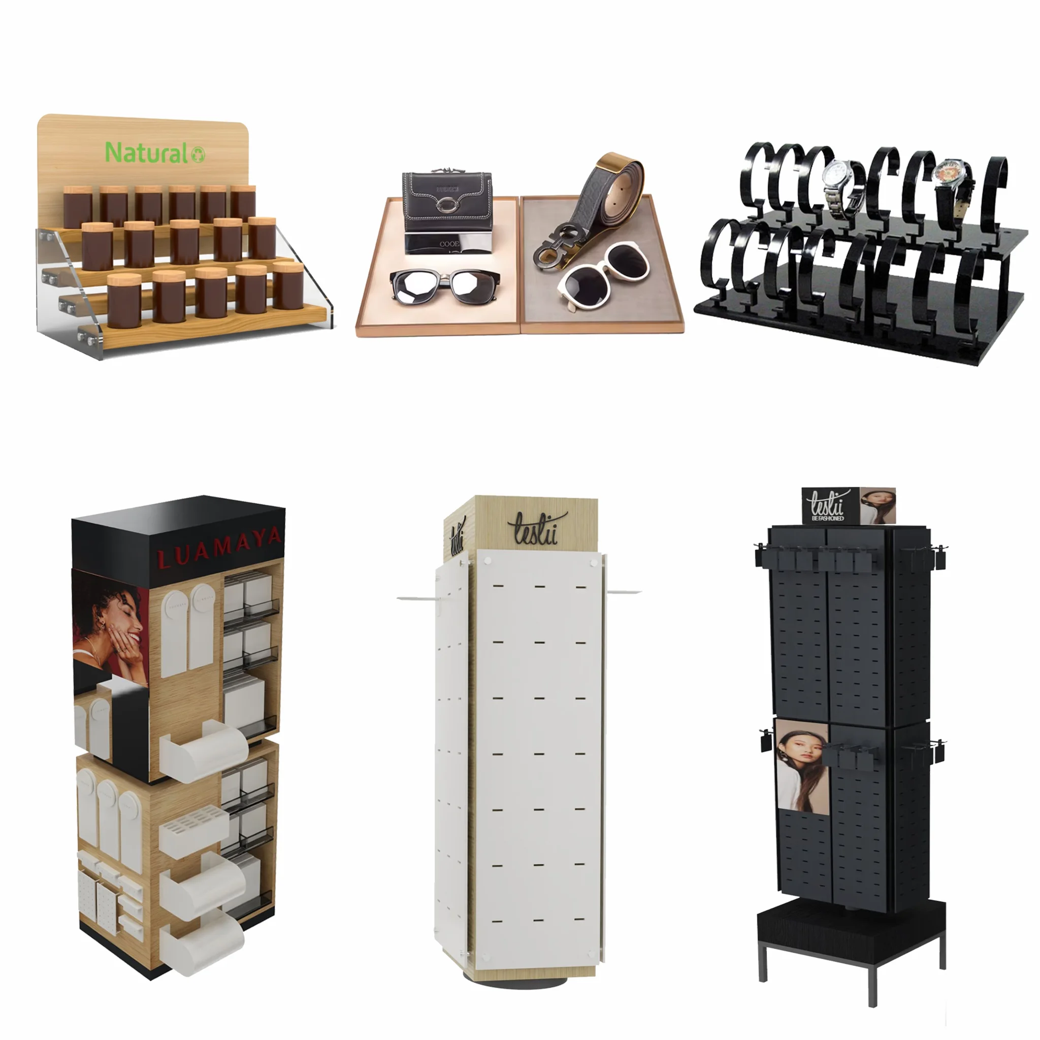 Material Variety: Acrylic, metal, wood, and cardboard options to fit different product types and store aesthetics.